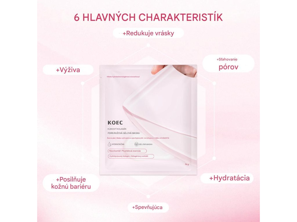KOEC Pink PDRN Collagen Jelly Mask spája silu kolagénu s moderným aktívom PDRN — vysoko účinným regeneračným komplexom, ktorý podporuje obnovu buniek, urýchľuje hojenie pokožky a zlepšuje jej pružnosť.